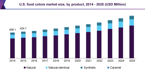 - Natural food colors are expected to reach USD 2.50 billion by 2025, owing to growing awareness among consumers regarding the health benefits associated with the product.