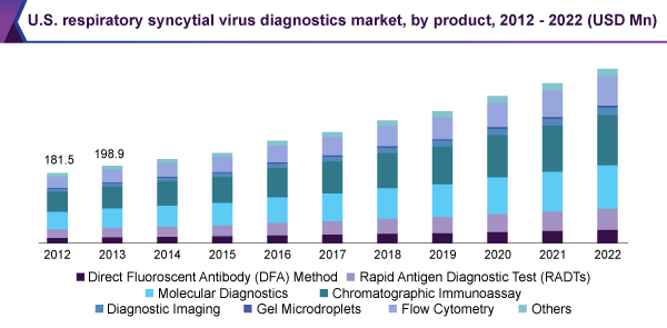 According to a report published by Grand View Research, Inc., the respiratory syncytial virus (RSV) diagnostics market is likely to reach a valuation of around USD 1.2 billion by 2022. Rising prevalence of respiratory infections, increasing infant population, high demand for in-vitro diagnostics, and growing demand for point of care facilities can drive the market over the forecast period (2012 to 2022).