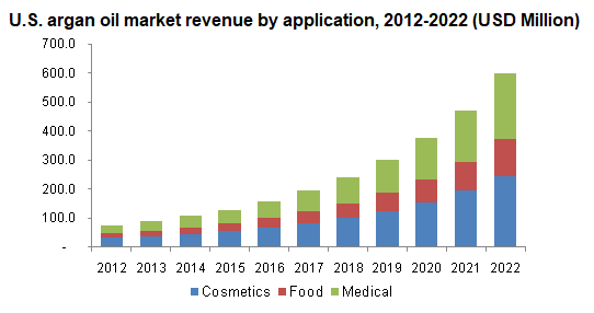 The global argan oil market is expected to reach USD 1.79 billion by 2022, according to a new report by Grand View Research, Inc. Expanding medical application base coupled with widening argan based cosmetic product lines is expected to drive global industry growth over the forecast period.