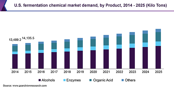 Fermentation Chemicals Product Outlook (Volume, Kilotons; Revenue, USD Million, 2014 – 2025)