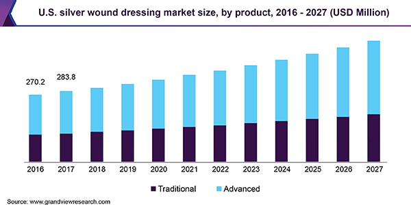 The global silver wound dressing market size is expected to reach USD 1.3 billion by 2027, expanding at a CAGR of 5.7%, according to a new report by Grand View Research, Inc. The rising cases of diabetic foot ulcers, introduction of technologically advanced products, and increasing cases of accidents and burns globally are the key driving factors for the market.