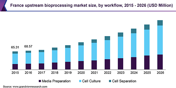 The global upstream bioprocessing market size is expected to reach USD 12.60 billion by 2026, expanding at a CAGR of 12.90% during the forecast period, according to a new report by Grand View Research, Inc. Commercial success and wide acceptance of biopharmaceuticals have provided lucrative growth avenues to several in house as well as contract manufacturing biopharmaceutical companies. Furthermore, a confluence of factors, such as high demand for biosimilars and biologics, launch of improved cost-effective technologies, and growing acceptance of single-use systems have driven the revenue performance of the market.