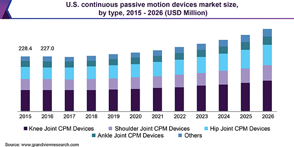 The global continuous passive motion devices market size is expected to reach USD 1.1 billion by 2026, according to a new report by Grand View Research, Inc. The increasing number of government initiatives along with the increasing number of ageing population are expected to drive the market growth over the forecast period.