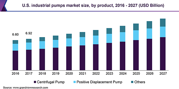 The global industrial pump market size is expected to reach USD 99.3 billion by 2027, expanding at a CAGR of 5.9% over the forecast period, according to a new report by Grand View Research, Inc. Technological advancements have resulted in increased efficiency, which is likely to propel the adoption of industrial pumps over the forecast period.