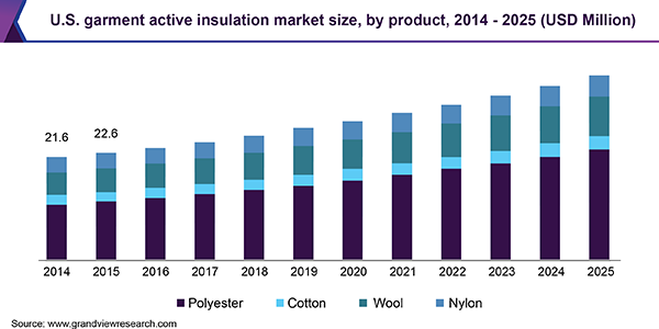 The global garment active insulation market size is expected to reach USD 249.2 million by 2025, according to a new report by Grand View Research, Inc. registering a CAGR of 6.6% over the forecast period. Incorporation of the insulation materials using advanced fabric manufacturing technology is anticipated to propel the industry growth.