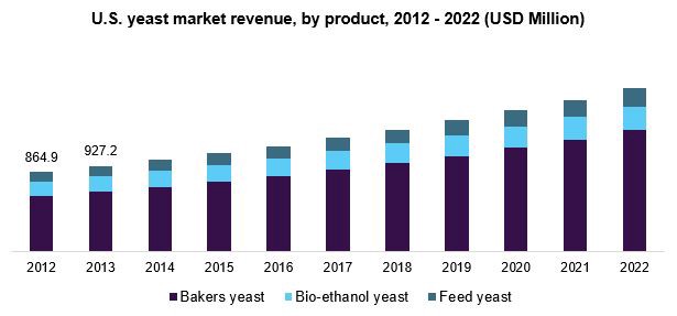 The U.S. and Mexico yeast market is expected to reach USD 2.2 billion by 2022 at a 7.8% CAGR, according to a new report by Grand View Research, Inc. Rise in food consumption and increased manufacturing of biodiesel will drive market growth.