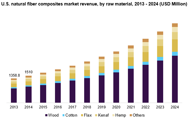 - Wood fiber composites dominated the global market in 2015, and this trend is likely to continue over the next eight years. Raw materials including flax, hemp, and kenaf are increasingly used in the production of lightweight and fuel-efficient cars, which in turn is expected to propel demand. In addition, recycled cotton is also being increasingly used for automotive industry thus driving growth.