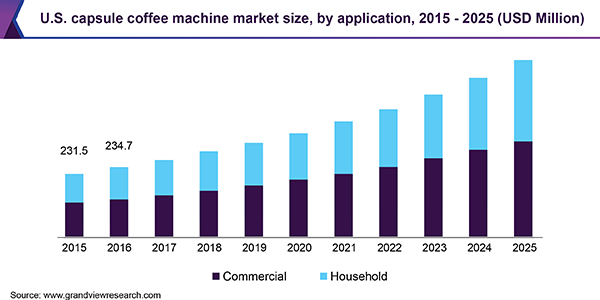 - The global capsule coffee machine market is expected to expand at a CAGR of 13.3% from 2019 to 2025