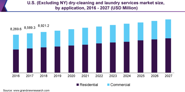 The global dry-cleaning & laundry services market size is anticipated to reach USD 79.91 billion by 2027, expanding at a CAGR of 3.4% over the forecast period, according to a new report by Grand View Research, Inc. Rising awareness regarding cleanliness and personal hygiene amongst the consumers is expected to escalate the growth of market in coming years.