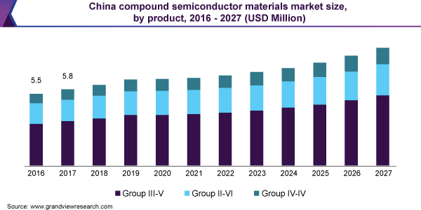 The global compound semiconductor materials market size is expected to reach 46.9 million by 2027, according to a new report by Grand View Research, Inc., expanding at a CAGR of 3.8% from 2020 to 2027. The market is expected to be driven by an increase in product demand from the end-use industries due to its ability to consume less power, along with the broad temperature range and high electron mobility.