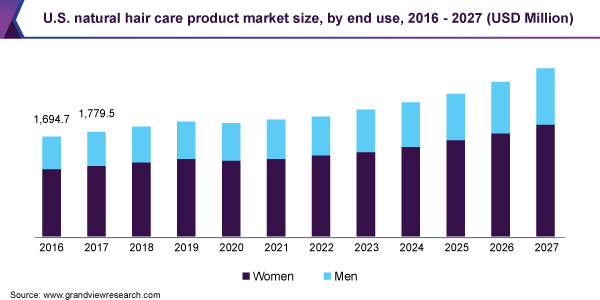 The global natural hair care product market size is anticipated to reach USD 12.66 billion by 2027, according to a new report by Grand View Research, Inc., expanding at a CAGR of 4.7% from 2020 to 2027. Growing concerns related to hair issues, such as hair fall, dandruff, dull hair, and split ends, and acceptance of natural hair care products because of their naturally hydrating, protecting, and strengthening properties, have been some of the crucial factors driving the market.