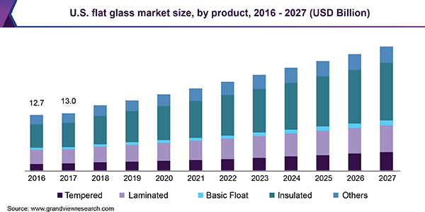 The global flat glass market size is expected to reach USD 202.9 billion by 2027, growing at a revenue-based CAGR of 7.3%, according to a new report by Grand View Research, Inc. The market is expected to grow on account of increasing product demand from the global construction sector.