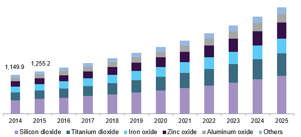 The global nano metal oxides market size is expected to reach USD 9,48 billion by 2025, at a registering a CAGR of 9.5% over the forecast period, according to a new report by Grand View Research, Inc. The market is expected to positively influenced by investments in the biomedical, personal care, and electronics sector.