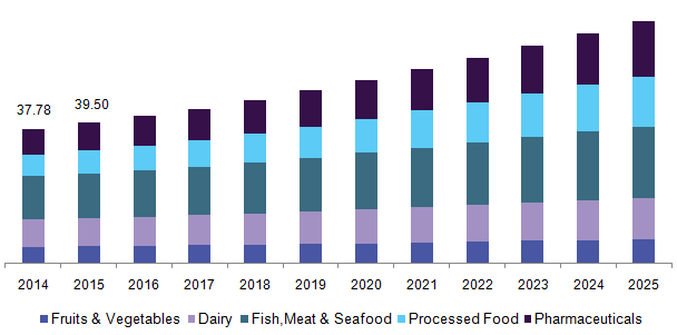 The North American cold chain market size is anticipated to reach USD 118.51 billion by 2025, according to a new report by Grand View Research, Inc. Advancements in packaging methods that are used for crops have become essential, owing to the expansion of trade over the past years. As per the Food and Agriculture Organization of the United Nations, over 20% to 40% of the total production of fruits and vegetables is accountable for post-harvest losses. Materials used for packaging play a significant role in enhancing shelf life.