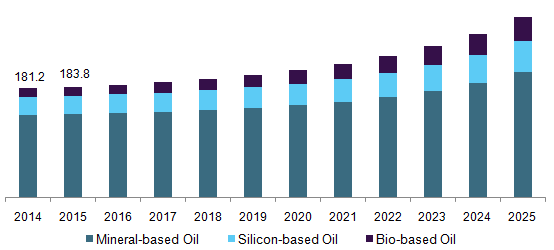 These products possess excellent insulative and electrical properties, oxidative stability and controlled low or negative gassing tendency. Crude oil is the major raw material, leading to price volatility owing to supply fluctuation in the global market. Political instability and crashing crude prices have driven industry growth in recent years, as consumers are opting for bulk volume purchases.