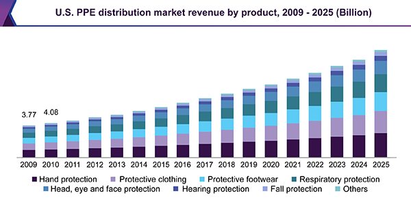 The North America and Europe personal protective equipment distribution market size is expected to reach USD 28.95 million by 2025, according to a new report by Grand View Research, Inc. Shifting consumer trends towards online spending coupled with growing connectivity across various countries has offered access to international brands and the new entrants as well.