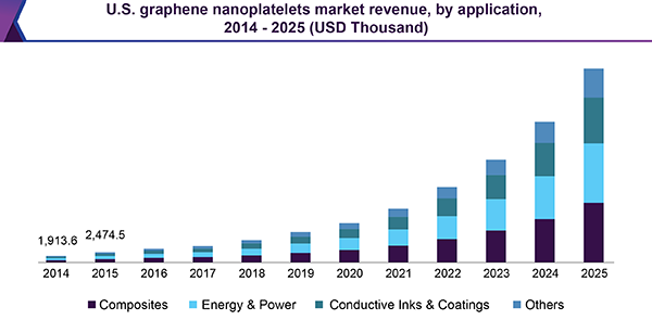 The global graphene nanoplatelets market size is expected to reach USD 206.0 million by 2025, at a registering a CAGR of 37.6% over the forecast period, according to a report by Grand View Research, Inc. The rising demand for lightweight composite materials in numerous end-user industries is expected to propel the market growth.