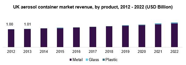 - UK aerosol container production is expected to witness significant growth, growing at a CAGR of over 4% from 2015 to 2022. Growing demand for these products in personal care products is likely to propel production over the next seven years. Rising demand for these containers owing to their light weight and corrosion resistance properties is expected to propel demand over the forecast period.