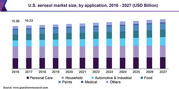 Aerosol Market Size, Share & Trends Analysis Report By Application (Personal Care, Household, Automotive & Industrial, Foods, Paints), By Material, By Type, By Region, And Segment Forecasts, 2020–2027