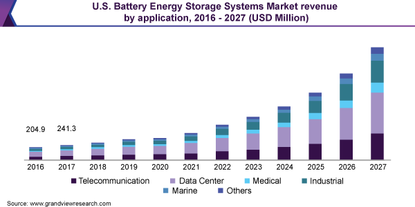 The global battery energy storage systems market size is expected to reach USD 23.4 billion by 2027, ascending at a CAGR of 27.2% over the forecast period, according to a new report by Grand View Research, Inc. Increasing demand for backup power supply across various industries along with requirement for improved grid network utilization is likely to drive the market over the forecast period.