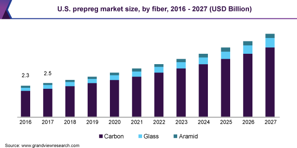 The global prepreg market size is expected to reach USD 20.7 billion by 2027 registering a CAGR of 10.6%, according to a new report by Grand View Research, Inc. Benefits of prepreg products, such as cost-effectiveness and low maintenance requirement, are further anticipated to fuel their demand across various sectors. Some of the key application industries include aerospace & defense, automotive, wind energy, and sporting goods.