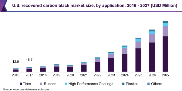 The global recovered carbon black market is projected to reach USD 490.8 million by 2027, expanding at a revenue-based CAGR of 32.6%, according to a new report by Grand View Research, Inc. Rising awareness regarding environment sustainability and depletion of non-renewable energy resources is anticipated to result in rapid growth of the market.