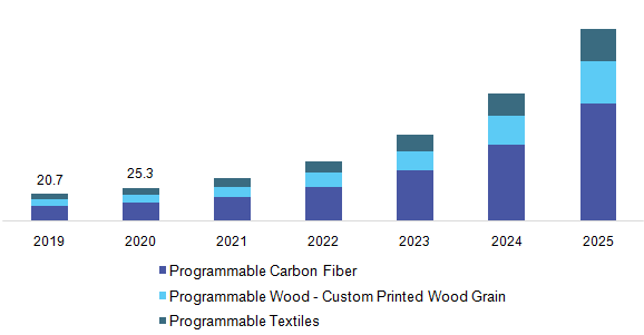 The increasing demand for reduction in the cost of manufacturing and processing is another major factor anticipated to accelerate the market growth by 2025. Moreover, there is a growing demand for efficient material and resource management. The self-transforming property of the technology would lead to the use of limited materials for several purposes, which in turn would lead to reduced wastage of natural resources, thereby maintaining a sustainable environment. Thus, the increasing focus on ensuring a sustainable environment is likely to accelerate the demand in the near future.