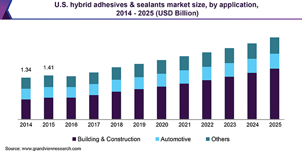 According to a report published by Grand View Research, the growing preference for hybrid resins in end-use industries, such as building and construction, and automotive is expected to drive the global hybrid adhesives & sealants market.