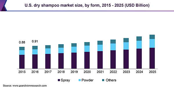 The global dry shampoo market size is expected to reach USD 5.2 billion by 2025, according to a new report by Grand View Research, Inc., expanding at a CAGR of 6.9% over the forecast period. The market is driven by consumer awareness regarding changing beauty and personal lifetsyle, especially in the hair care applications. Moreover, drastic change in the purchasing power of consumers in developing countries such as China and India is anticipated to drive the demand over the forecast period.