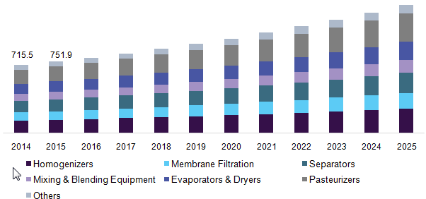 Dairy Processing Equipment Equipment Type Outlook (Revenue, USD Million, 2014–2025)
