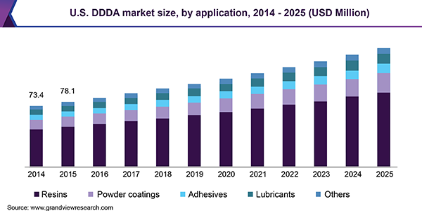 - The resin application segment accounted for just under 64.0% in 2018 and is expected to grow in future due to surging demand for nylon in China, U.S., and India. This is driven by favorable properties such as flexibility, heat stability, and high scratch resistance, preferred in the in automotive domain