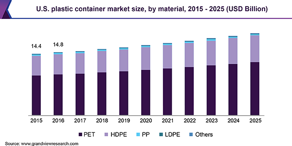 The global plastic container market size is anticipated to reach USD 112.5 billion by 2025, according to a new report by Grand View Research, Inc., expanding at a CAGR of 4.0% over the forecast period. Increasing demand for convenient food products such as functional and nutritional drinks is expected to expand the scope for packaging container over the forecast period.