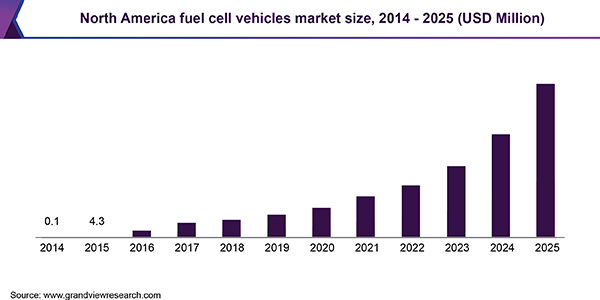 The global fuel cell vehicles market size is expected to reach USD 1.75 billion by 2025, according to a new report by Grand View Research, Inc., registering a 33.7% CAGR during the forecast period. This rapid growth can be attributed to increase in investments by governments over the world for development and adoption of fuel cells.