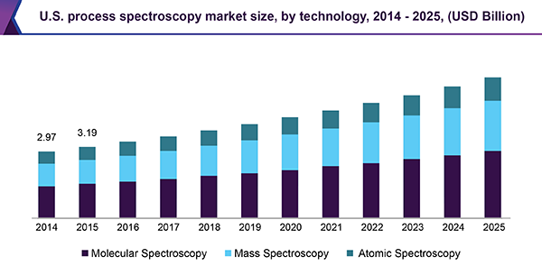 The global process spectroscopy market size is estimated to reach USD 25.10 billion by 2025, according to a new report by Grand View Research, Inc., progressing at a CAGR of 7.5% during the forecast period. Growing efforts in the pharmaceutical industry to undertake advanced research and development is leading to increased adoption of various spectroscopy techniques over the forecast period.