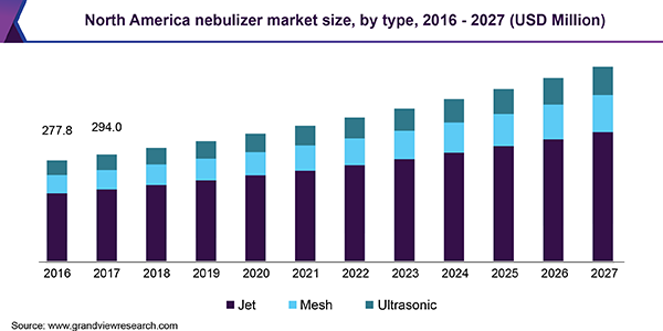 The global nebulizer market size is expected to reach USD 1.5 billion by 2027, expanding at a CAGR of 6.6% over the forecast period, according to a new report by Grand View Research, Inc. Rising incidence rate of chronic respiratory diseases, increasing demand for home healthcare devices, and rising geriatric population worldwide are the major factors leading to market growth.