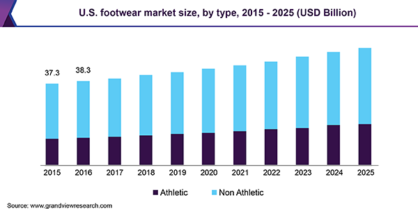 - In terms of revenue, athletic type segment is projected to ascend at the fastest CAGR of 4.4% from 2019 to 2025