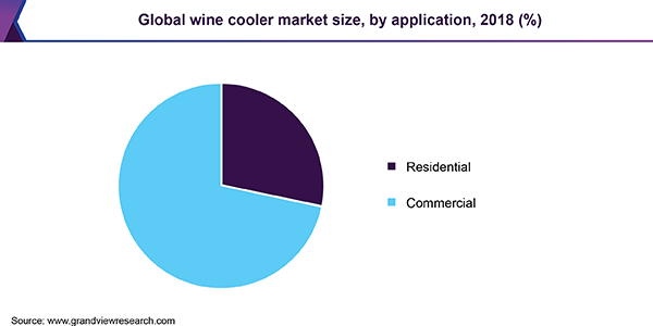Commercial application is expected to continue leading in terms of overall market share throughout the forecast period. Growing popularity of wine among millennial is the key factor driving the segment growth. Residential segment, on the other hand, is expected to expand at the fastest CAGR of 7.2% over the forecast period. The tradition of drinking wine with dinner in various countries including U.S. and China is the key factor driving the demand for wine cooler from residential sector.