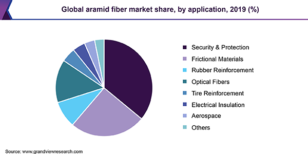 - Para-aramid fiber accounted for a market share of 75.6% in 2019, owing to its properties such as excellent strength-to-weight ratio coupled with superior chemical resistance