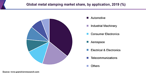 - North America is expected to witness a CAGR of 2.5% in terms of revenue and is anticipated to continue dominating the overall metal stamping market over the forecast period owing to the increasing production of automobiles and consumer electronics.