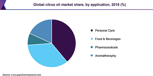 Citrus oil is widely available in many countries including U.S., U.K., and Germany and is commonly used in food and beverages. Orange oil led the market in 2018 and is expected to maintain its dominant position throughout the forecast period. Increasing use of the product in skin care products is the main factor driving the demand. Orange oil is used for the treatment of acne and to encourage skin rejuvenation. Furthermore, regular use of orange oil helps regulate blood flow to skin, fueling the demand for orange oil from the cosmetic industry.