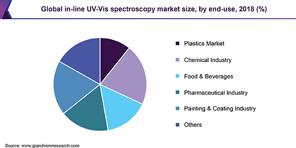 - In-line UV-Vis spectroscopy market for color measurement accounted for the largest revenue share in 2018