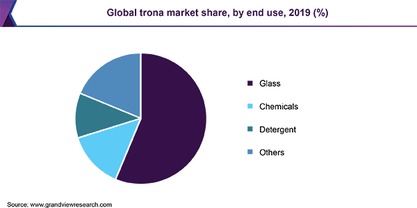 - Glass was the largest end-use industry for trona products and accounted for a volume share of 54.5% in 2019. Moderate expansion of the building and construction sector after COVID-19 is likely to remain a key long term driver for the market
