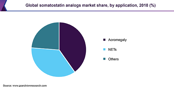 - Octreotide held the largest market share in 2018 due to its various therapeutic applications