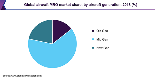 The global aircraft MRO market size is expected to reach USD 104.46 billion by 2025, registering a CAGR of 4.7% during the forecast period, according to a new report by Grand View Research, Inc. The growing influx of aircraft OEMs into the MRO sector traditionally dominated by specialized maintenance providers has opened up new avenues for the market growth.
