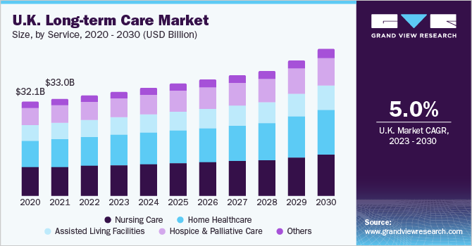The global long-term care market size is expected to reach USD 1.74 trillion by 2030, based on a new report by Grand View Research, Inc. It is projected to register a CAGR of 6.62% during the forecast period. The growth of the market can be attributed to the rising prevalence of target diseases, especially Alzheimer’s and Dementia, and high unmet demand in low and middle-income countries (LMIC). Long-term care (LTC) provides specialized care for the elderly.The increasing awareness about LTC centers and their advantages over hospitals is expected to propel market growth. Almost all types of LTC services provide therapeutic services. Moreover, growing government initiatives to increase the adoption of and awareness about LTC are expected to drive the growth of the market over the forecast period.
