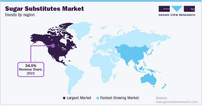- The high-intensity sweeteners segment held the largest revenue share in 2021 as only small quantities are required to produce the equivalent sweetness as regular sugar