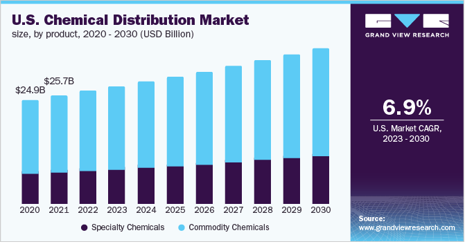 The global chemical distribution market size is expected to reach USD 403.22 billion by 2030 and register a CAGR of 6.3% from 2023 to 2030, as per the new report by Grand View Research, Inc. The growth is majorly driven by rising demand for a variety of specialty and commodity chemicals from numerous end-use industries around the world.