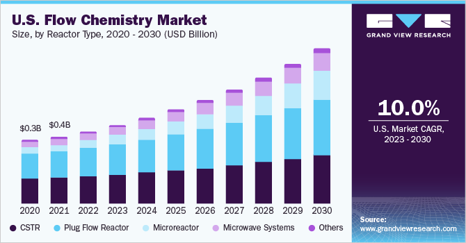 The global flow chemistry market size is expected to reach USD 3.75 billion by 2030, according to a new report by Grand View Research, Inc. It is expected to expand at a CAGR of 11.2% from 2022 to 2030. Advantages over batch reactors and growing investments in the pharmaceutical and chemical industries are projected to boost the market growth.
