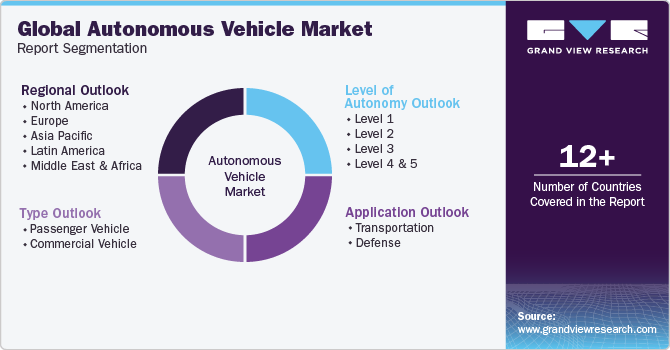 Grand View Research has segmented the global autonomous vehicle market based on vehicle type, level of autonomy, application, and region: