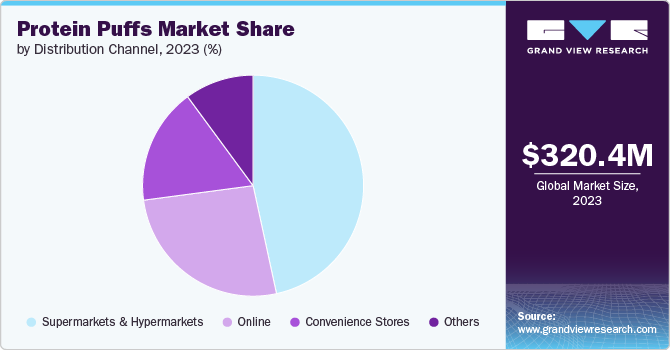 The supermarkets & hypermarkets segment held a major share of the market in 2023. Supermarkets & hypermarkets are strategically positioned to capitalize on the convenience factor that drives protein puff consumption. Consumers are increasingly seeking on-the-go snack options that are quick and easy to consume, ideally located within familiar grocery stores. The growing presence of protein puff brands within the snack aisle, often positioned alongside other healthy snack options like granola bars and trail mixes, further emphasizes this convenience appeal. This accessibility, coupled with the increasing focus on healthy snacking within supermarkets & hypermarkets, provides a robust platform for protein puff brands to engage with a large and receptive consumer base.